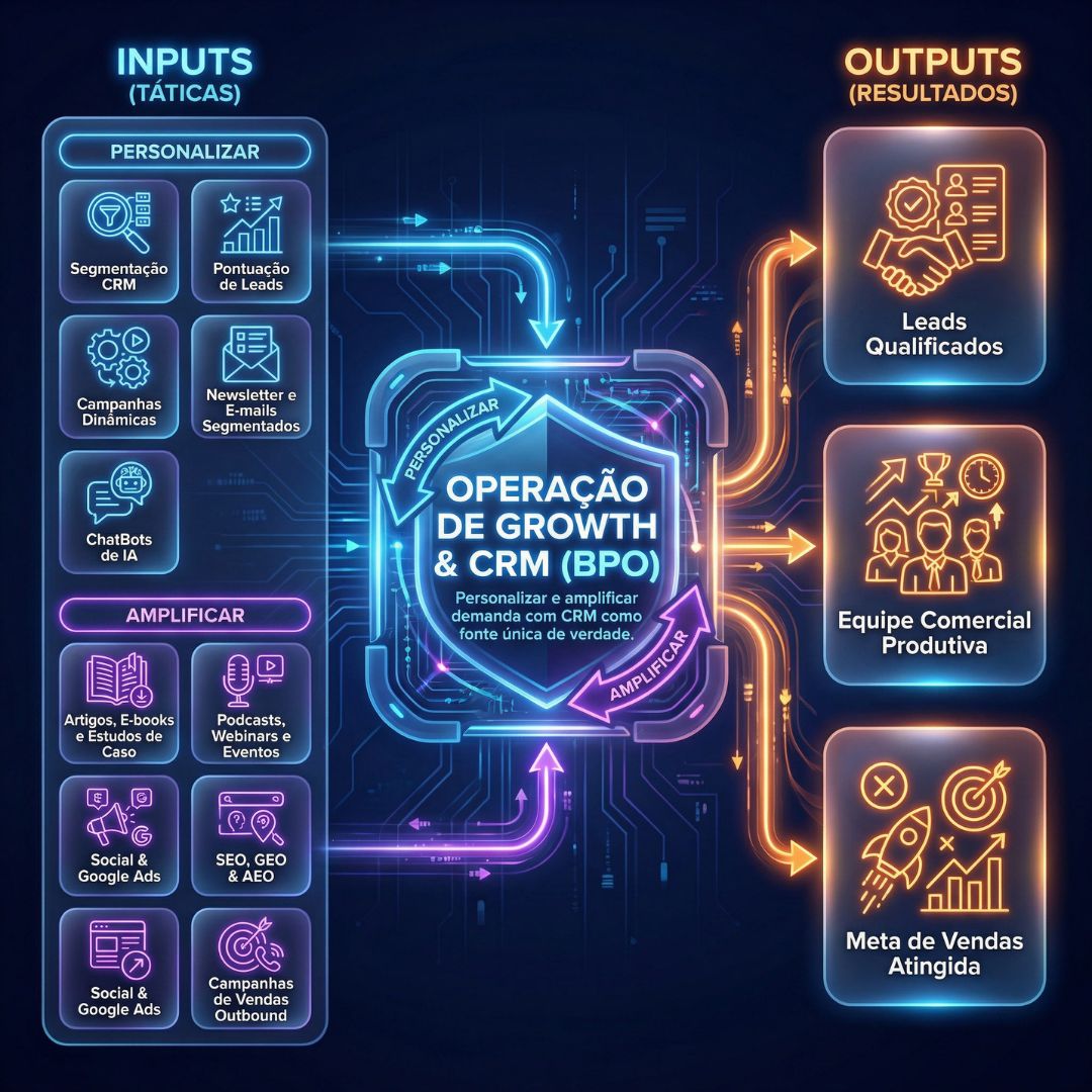 Funis lineares vazam; Loops aprendem. Implementamos uma cultura de dados e automação que detecta gargalos em tempo real, permitindo que você escale a receita sem precisar escalar o caos.
