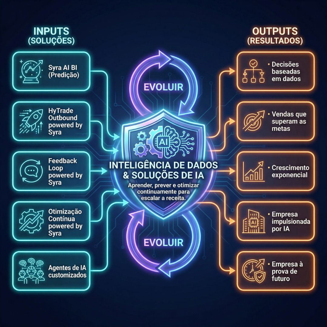 Soluções complexas não se vendem com ruído, nem escalam no caos. Enquanto o mercado tenta consertar o funil, nós instalamos um motor. O Loop HyTrade une a Engenharia de Narrativa (para traduzir sua complexidade) com a Inteligência de Processos (para governar sua operação). O resultado? Uma máquina que aprende, corrige a rota e fica mais inteligente a cada ciclo.