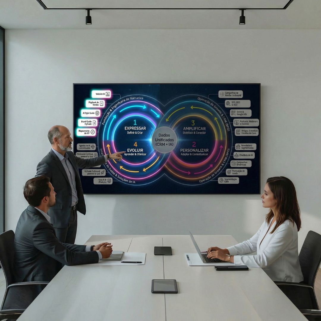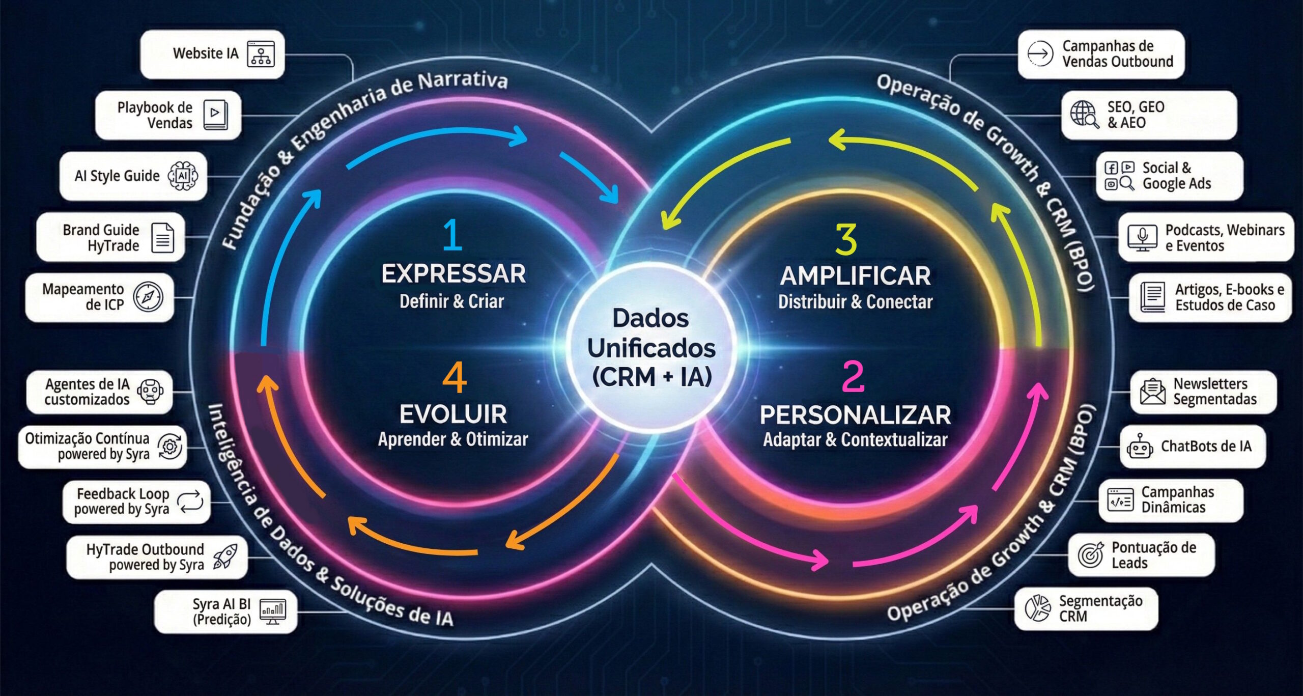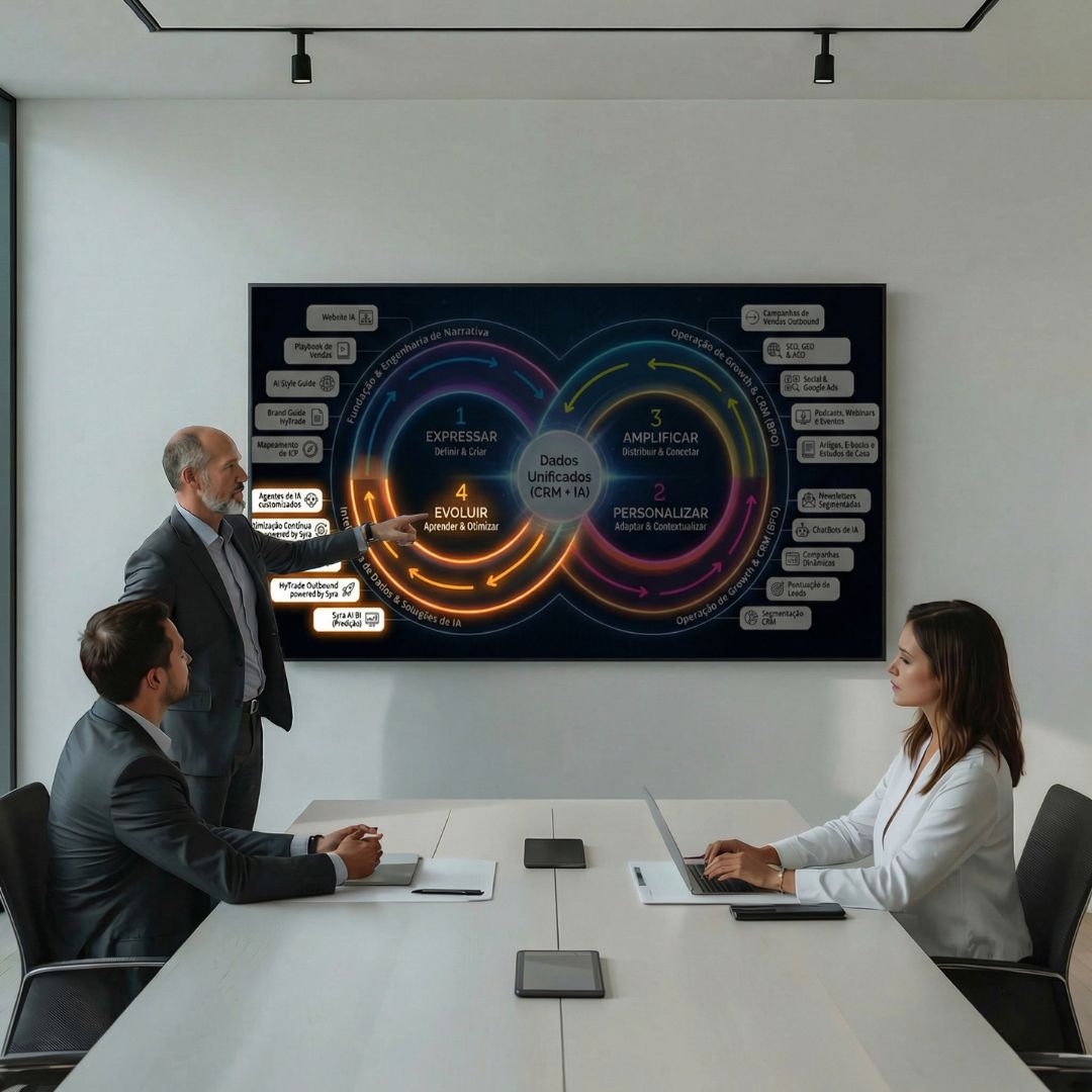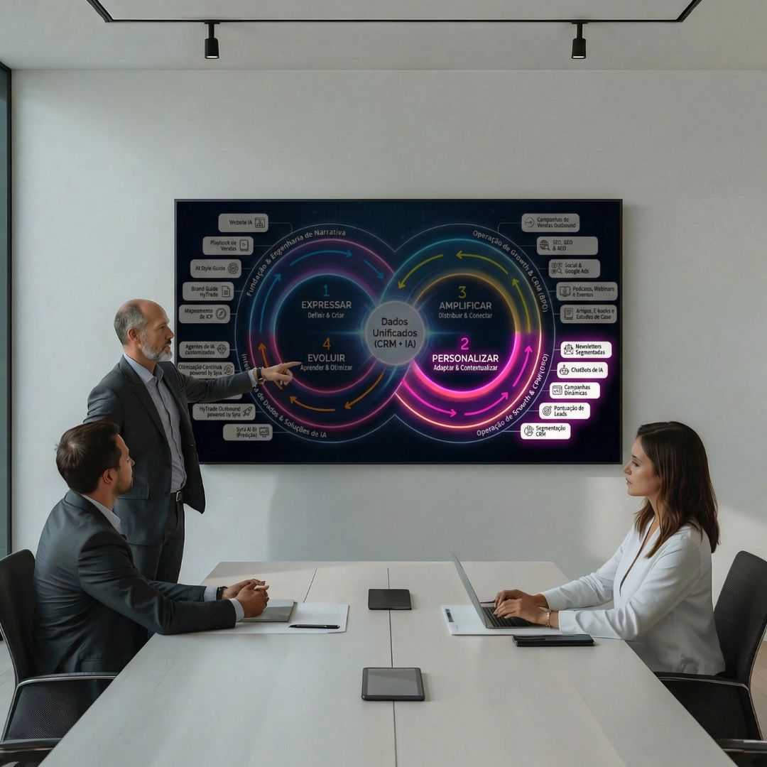 Sua solução é brilhante. Mas se o mercado não entende o que você vende e sua operação comercial vive no modo improdutivo, a receita nunca será previsível. A HyTrade combina Engenharia de Narrativa com Sistemas de Vendas Inteligentes para transformar complexidade técnica em pipeline qualificado.